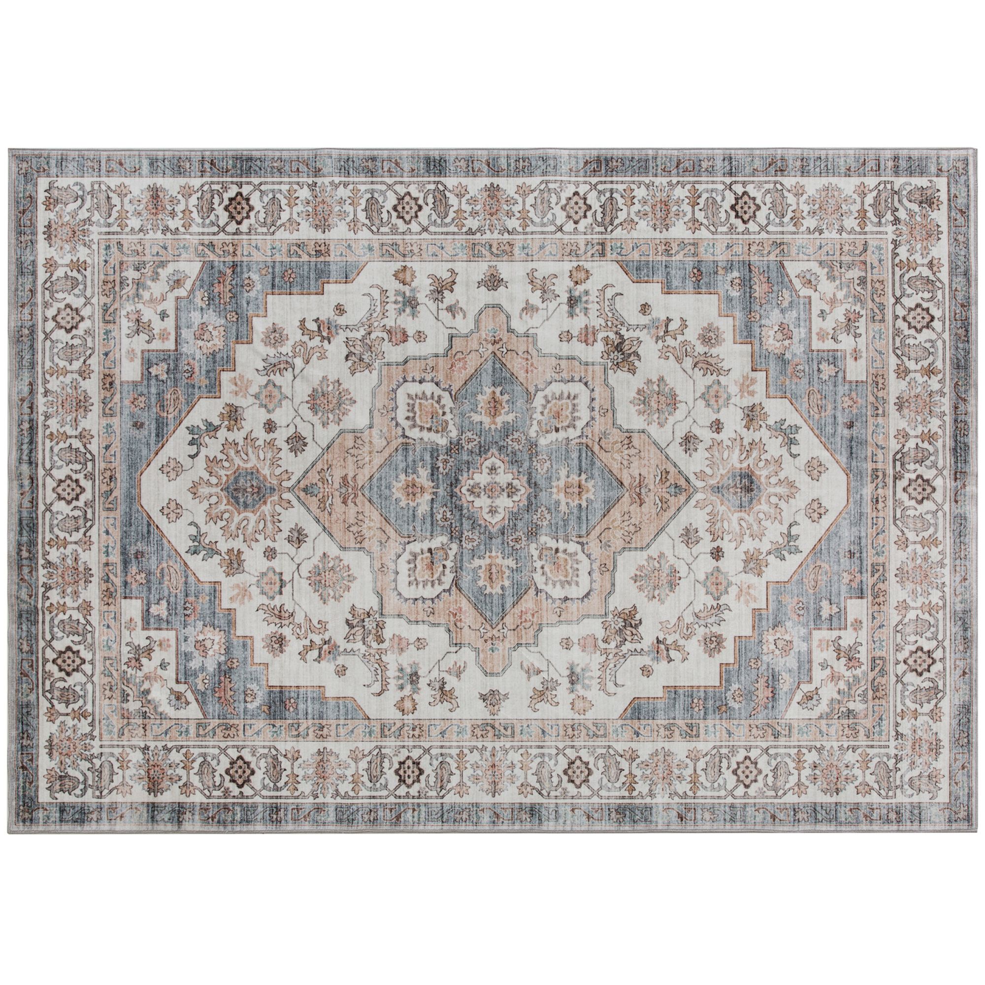 Home > 4x6 Area Rug, Vintage Machine Washable Rug, Non-Slip Carpet for Living Room, Bedroom, Dining Room, Brown & Light Blue