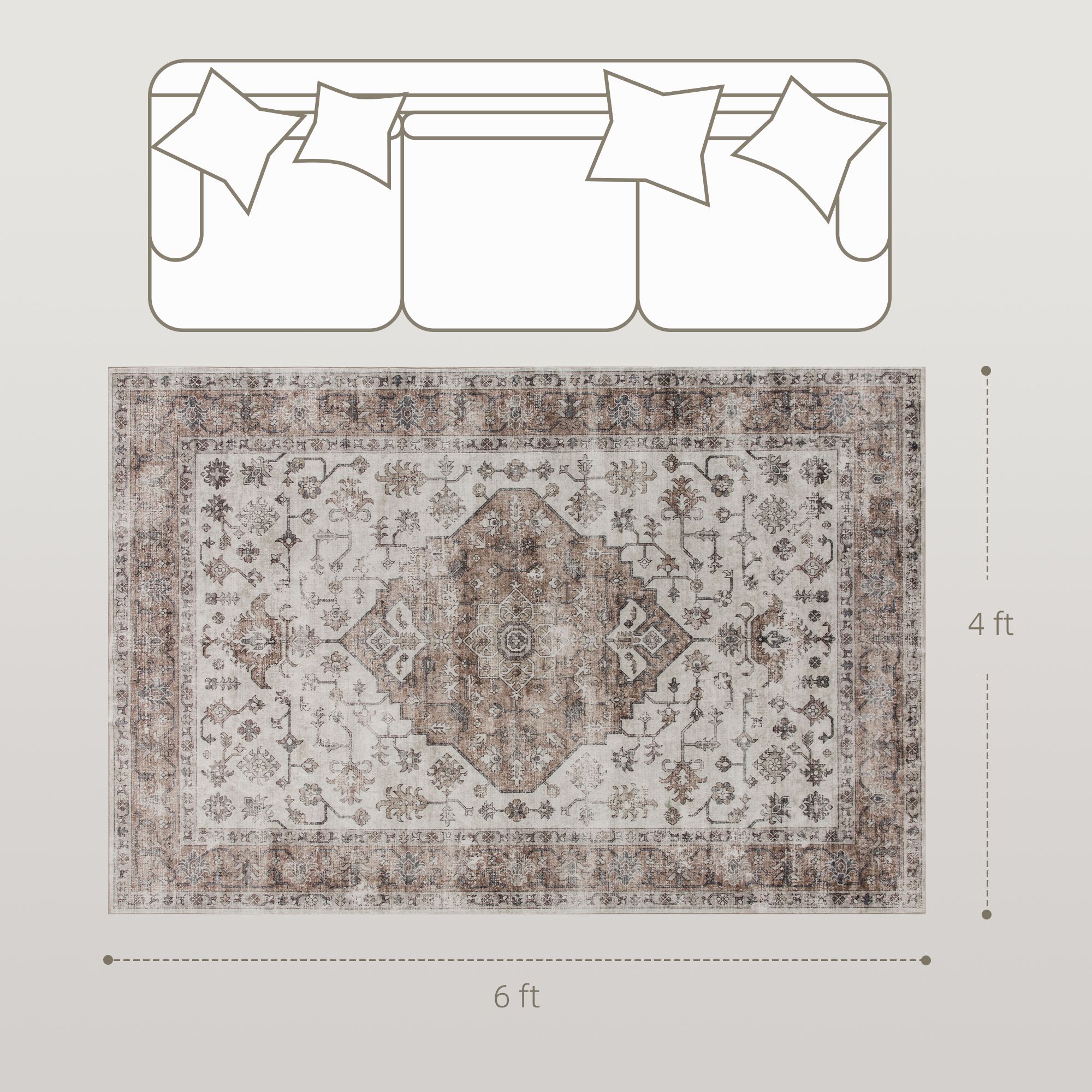 Step onto luxury with the HOMCOM flannel faux fur heat transfer carpet. This 4x6 vintage-style rug, featuring intricate patterns and beautifully stitched edges, is a treat for your feet and a charming addition to any high-traffic space like your living room, bedroom, or hallway. It's a breeze to keep clean and is machine-washable, making it excellent for pet owners.