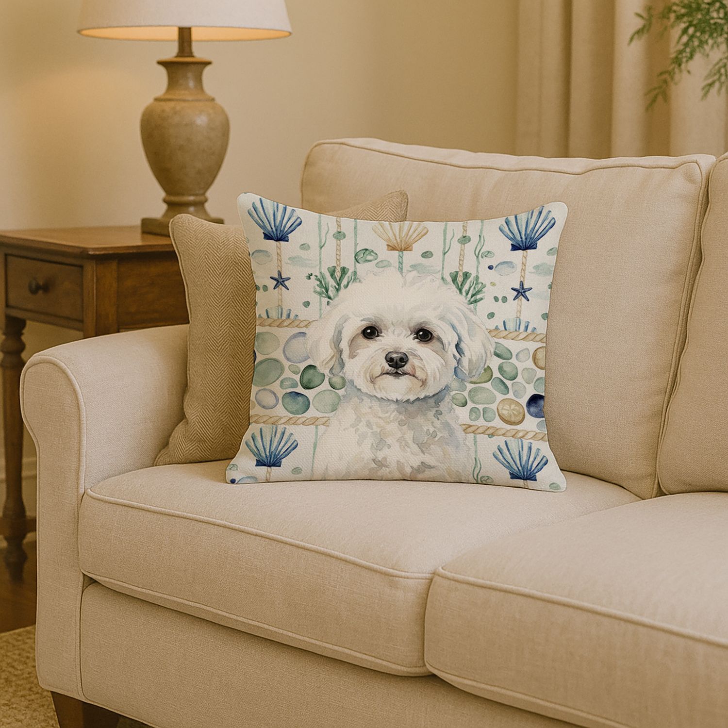 Bichon Frise Coastal Sea Glass Throw Pillow Decorative Indoor Outdoor Accent Cushion for Couch, Bed or Patio, 14Hx14W