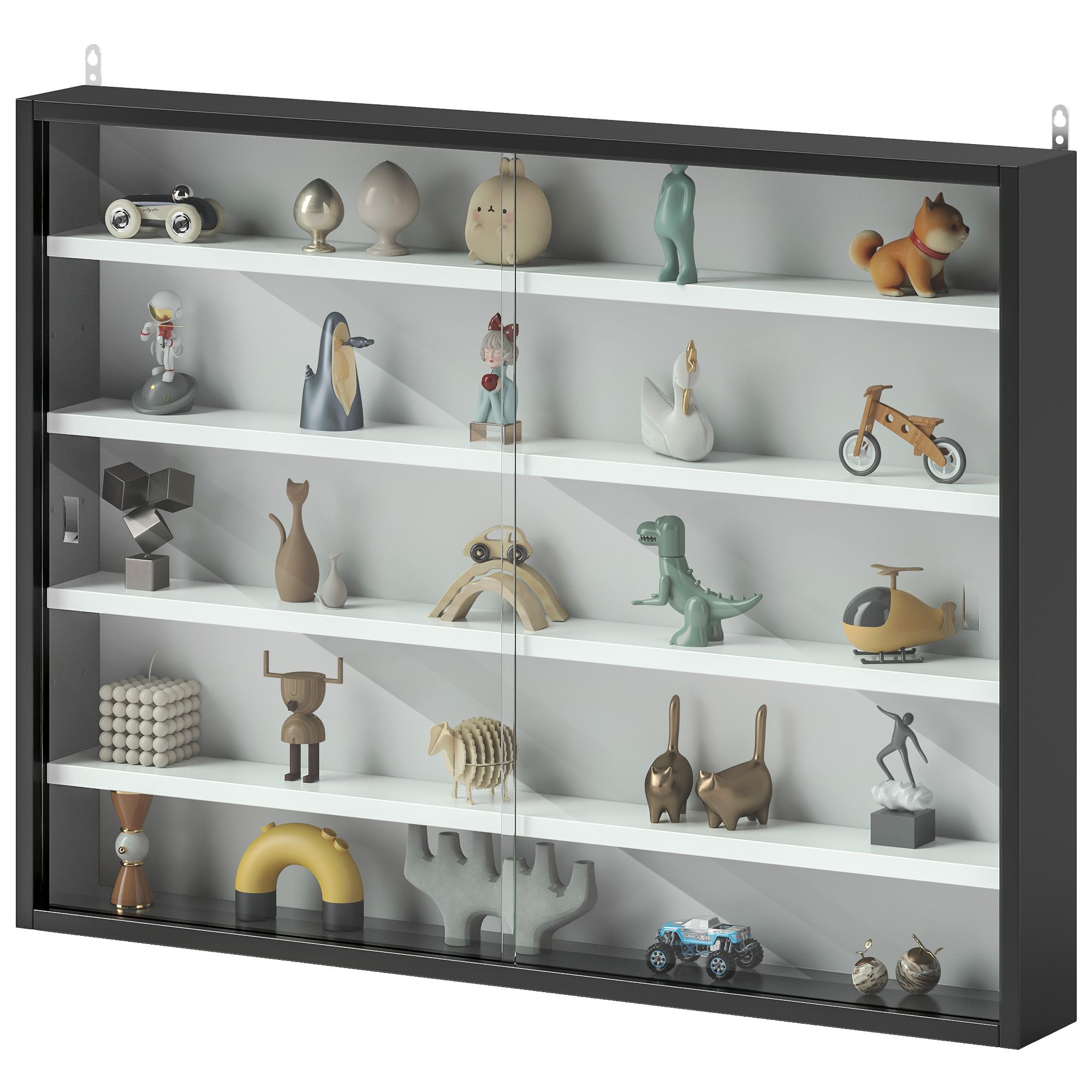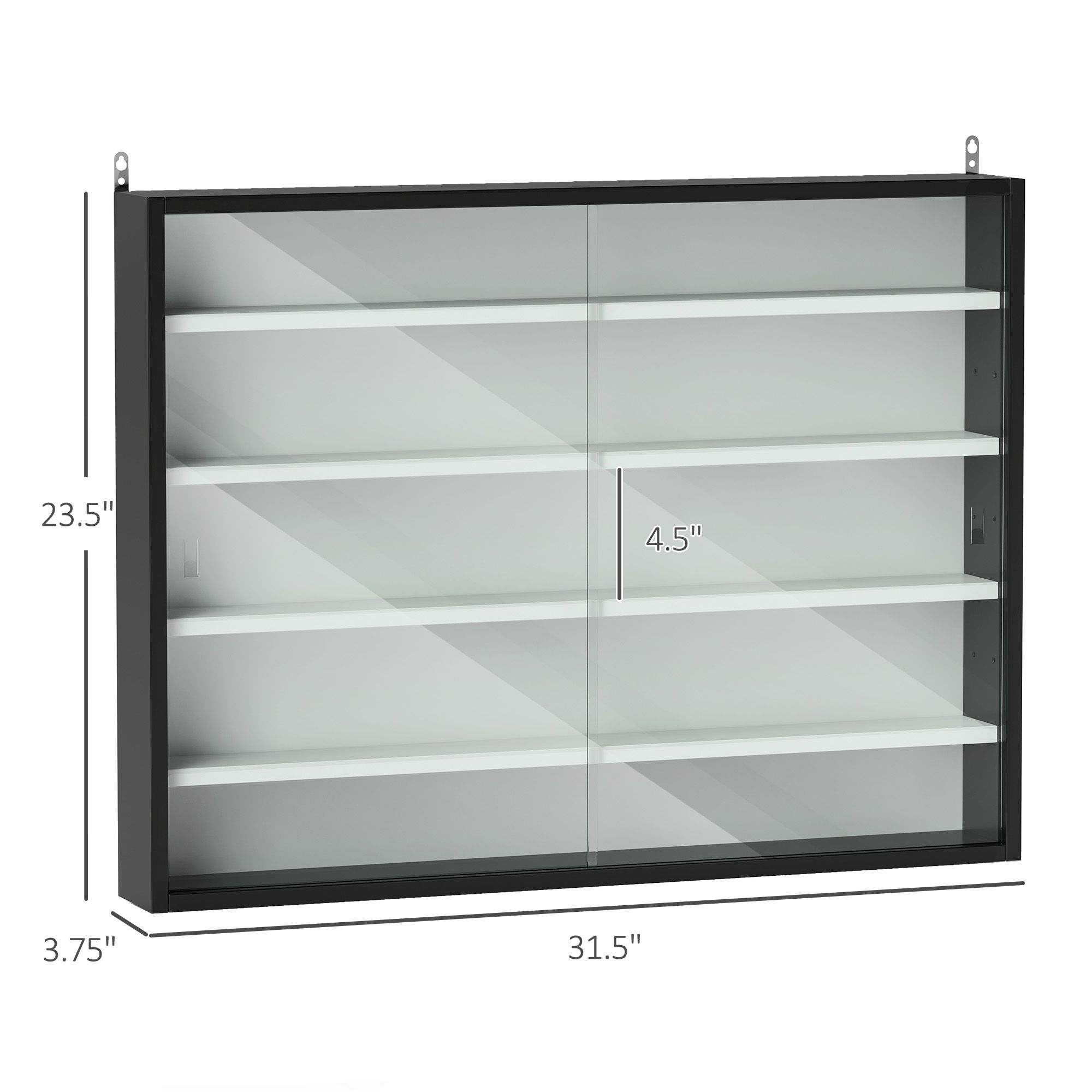 Do you have small items you'd like to organize or precious souvenirs you'd prefer to keep safe from damage? HOMCOM's display cabinet with glass doors for collectibles solves both problems. With four adjustable shelves, it offers five levels of storage for your items. The large glass front doors provide a clear view, letting you proudly display your prized possessions while keeping them protected. Show off your treasures with this stylish, wall-mounted glass cabinet from HOMCOM.