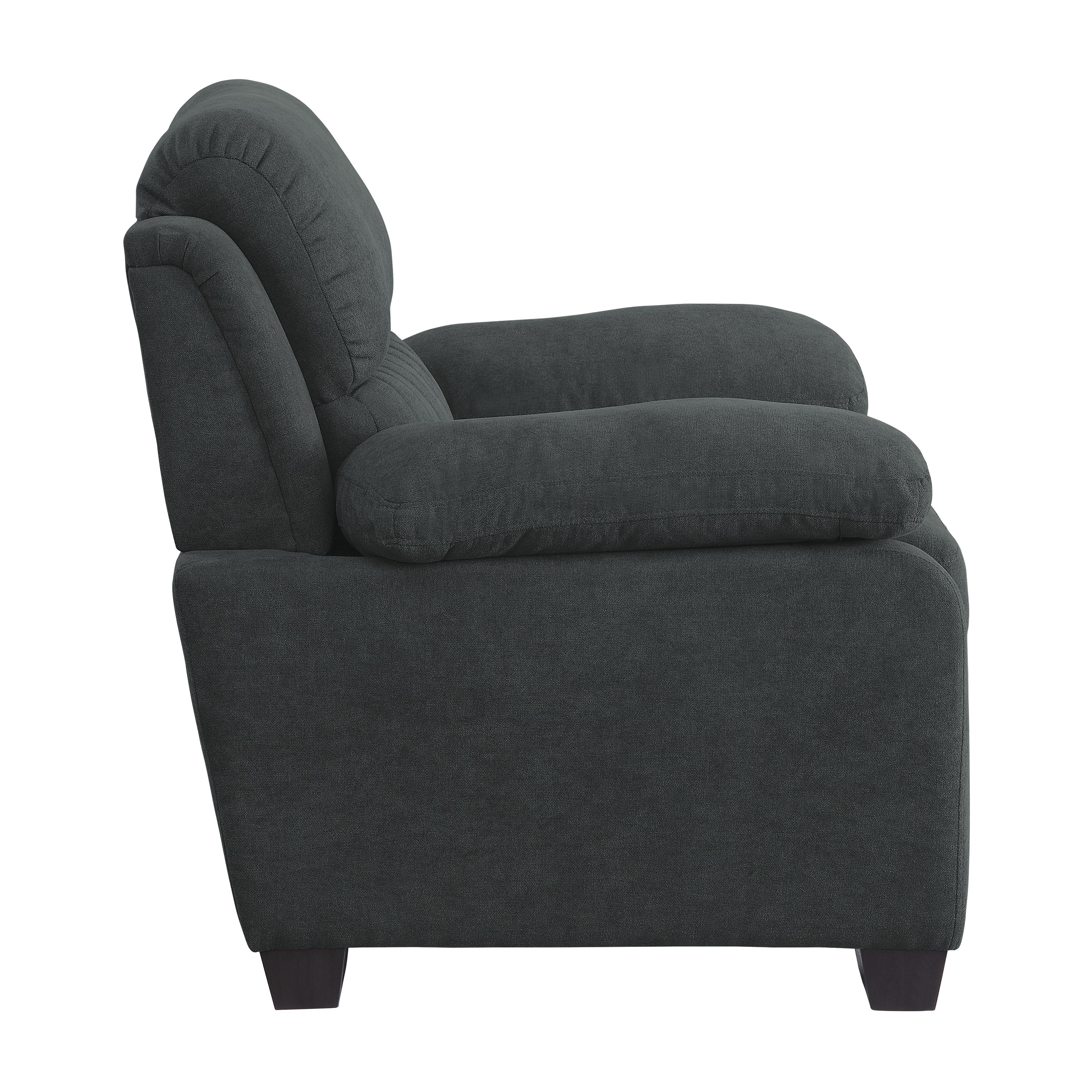 A modern profile serves to lend visual contrast and support to the plush seating and pillow-top arms of the Holleman Collection. The dark gray textured fabric cover acts as a neutral palette for your decorative preferences. Channel tufting accents the lower seatback of the chair providing subtle accent to the collection.