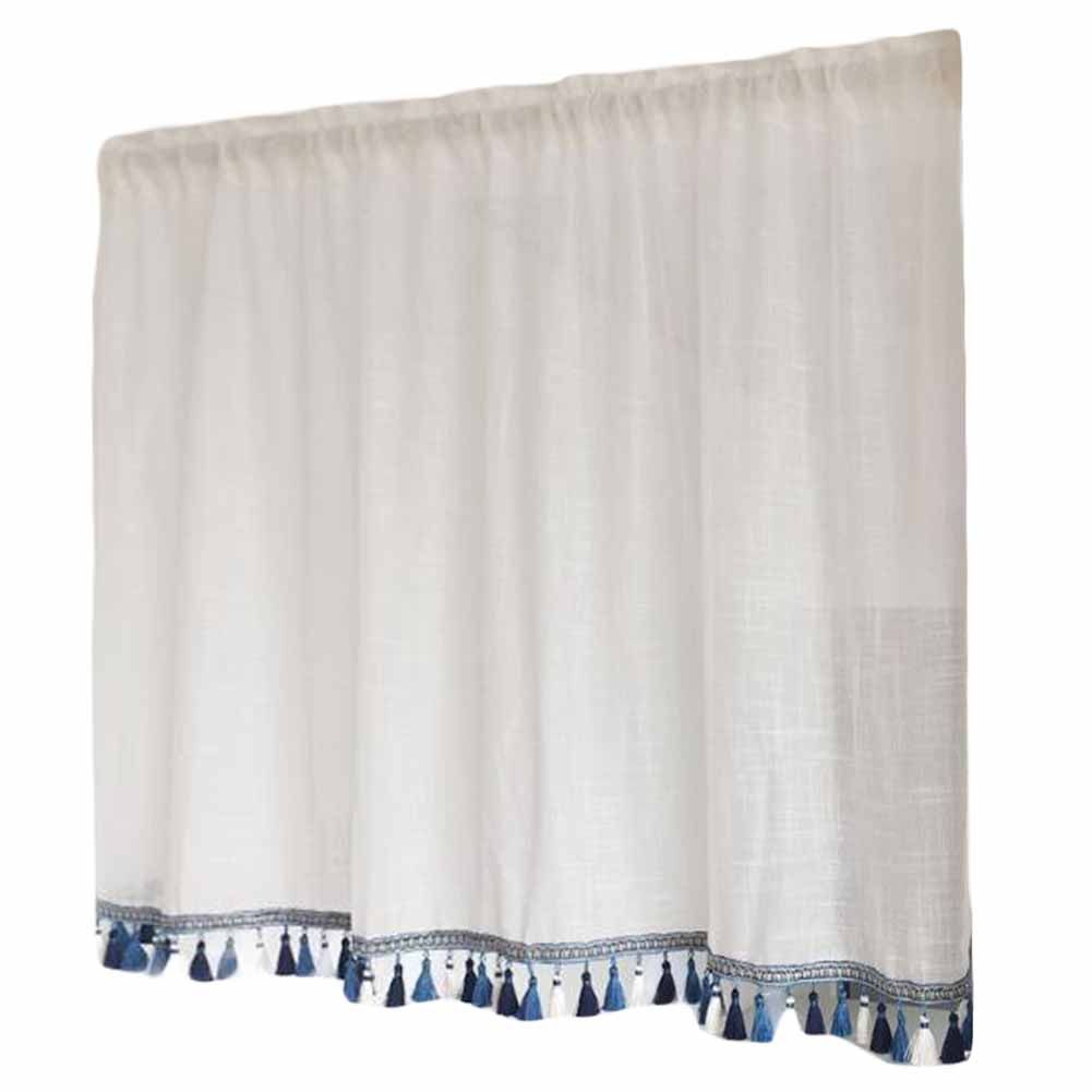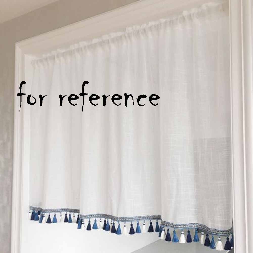 Semi-Sheer Cafe Curtain Tassels Short Kitchen Curtain Half Window Curtain Bedroom Curtain, 57x24 inch Semi-Sheer Cafe Curtain Tassels Short Kitchen Curtain Half Window Curtain Bedroom Curtain, 57x24 inch
