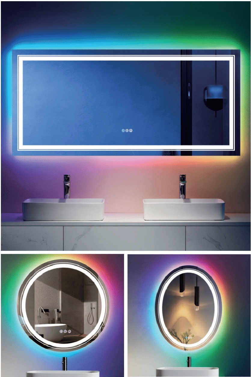 Home > Triple Color Temperature/LED/RGB Smart Touch Control Bathroom Mirror with Tempered Glass, Adjustable Light, Fog & Shatterproof, Memory Function
